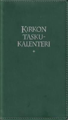 Kirkon taskukalenteri 2026 + tummanvihreät pujotuskannet + kynäpidike